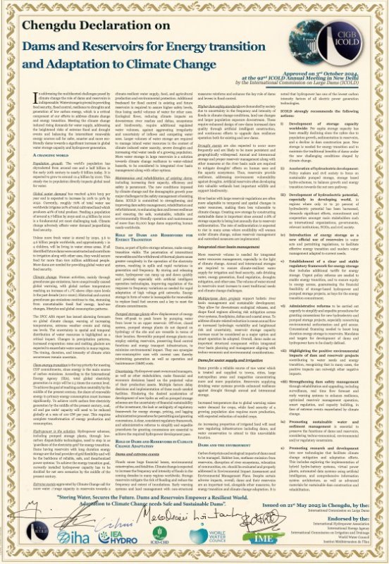 Déclaration de Chengdu sur le rôle des barrages dans la transition énergétique et l’adaptation au changement climatique