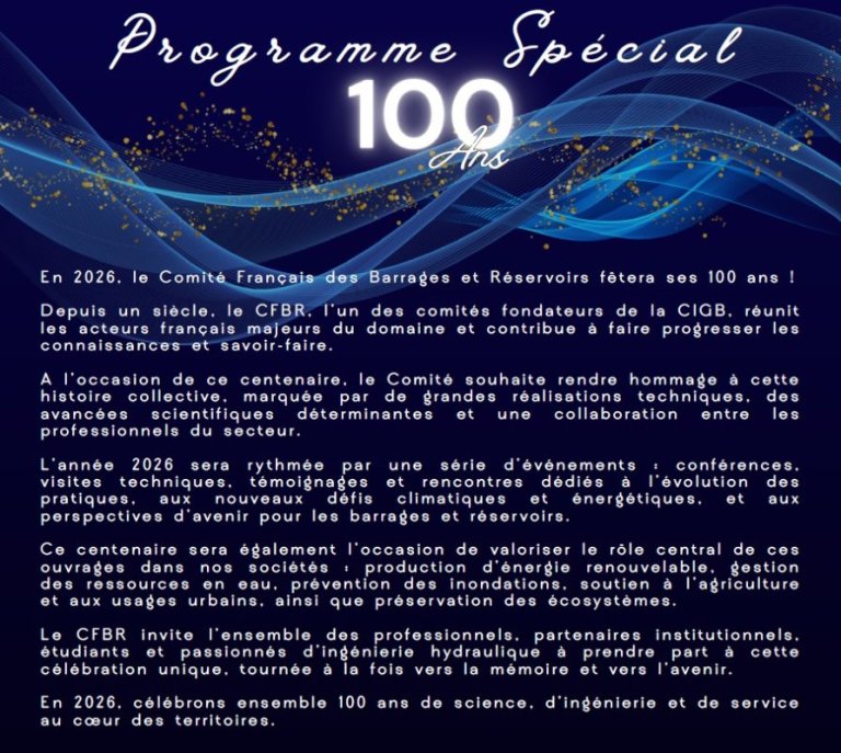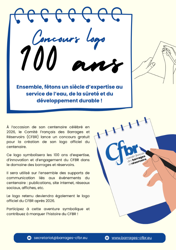 À l’occasion de son centenaire célébré en 2026, le Comité Français des Barrages et Réservoirs (CFBR) lance un concours pour la création de son logo officiel du centenaire. Ce logo symbolisera les 100 ans d’expertise, (…)25 juillet 2025 -