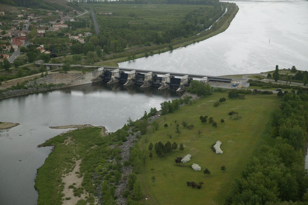 Le barrage d’Arras a été construit en 1970 en travers du Rhône retient un volume d’eau de 44 000 milliers de m³ sur une surface de 306 hectares.