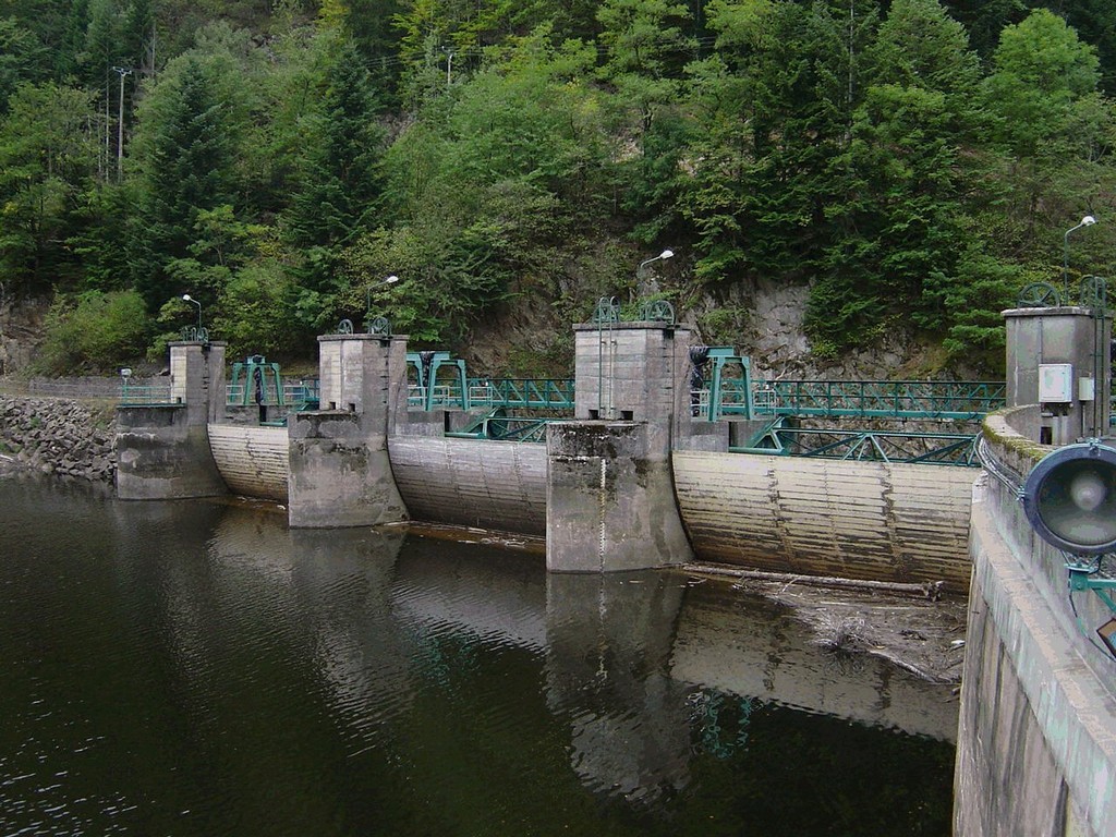 Le barrage de Grande Rhue - ou barrage des Essarts - a été construit en 1927 en travers de la rivière Grande Rhue retient un volume d’eau de 3 650 milliers de m³ sur une surface de 370 hectares.