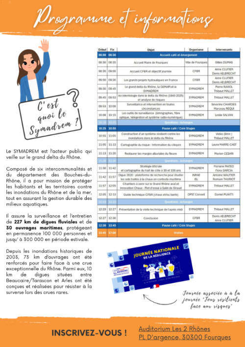 Retrouvez le flyer pour la journée des écoles 2025 au SYMADREM (Auditorium de Fourques)